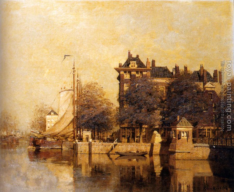 * Hand-painted Johannes Christiaan Karel Klinkenberg Oil Painting Reproduction : Moored Sailing Vessels Along A Quay Amsterdam