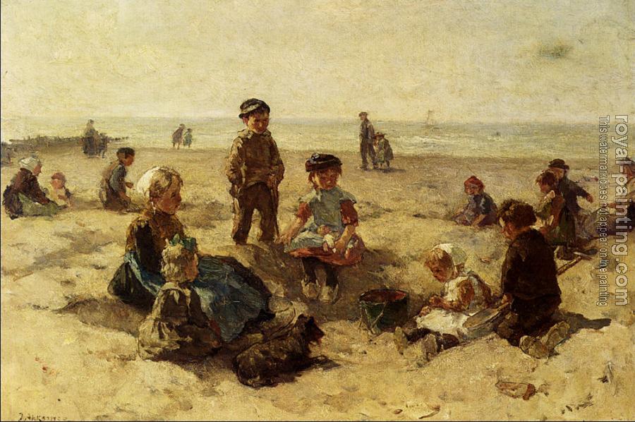 Children Playing On The Beach by Johannes Evert Akkeringa