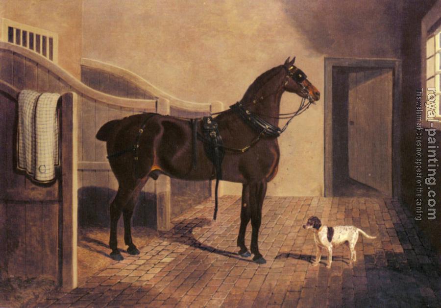 A Favorite Coach Horse and Dog in a Stable by John Frederick Jr Herring