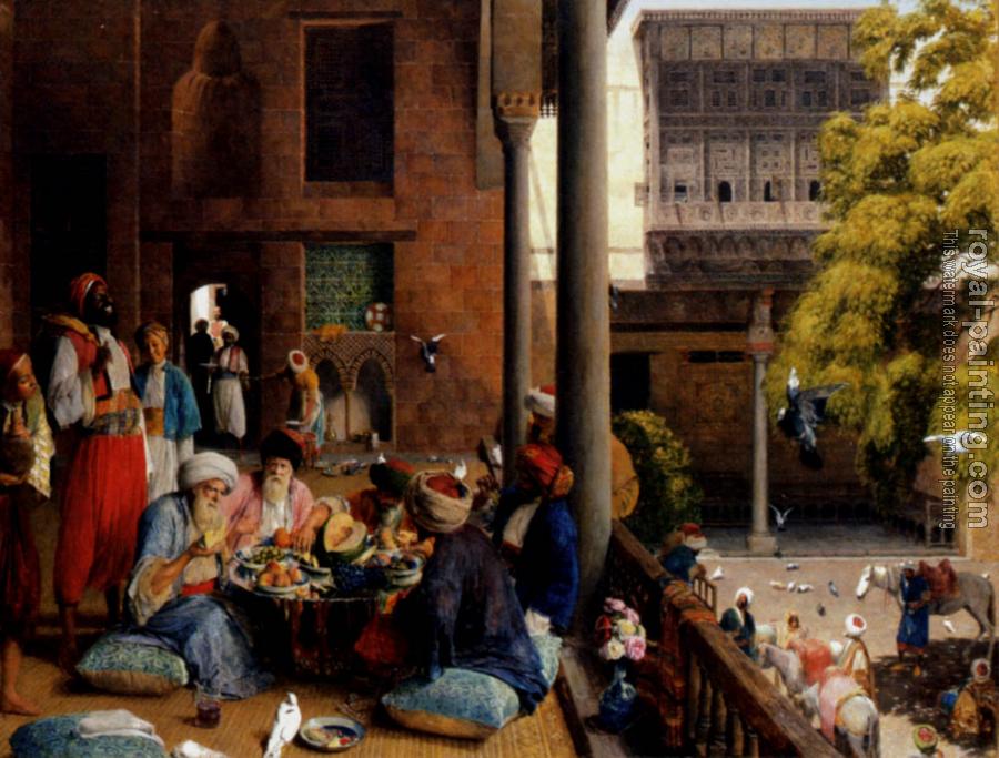 * Hand-painted John Frederick Lewis Oil Painting Reproduction : The midday meal, Cairo