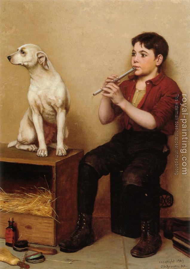 * Hand-painted John George Brown Oil Painting Reproduction : Music Hath No Charms