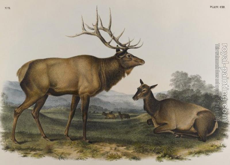 * Hand-painted John James Audubon Oil Painting Reproduction : American elk