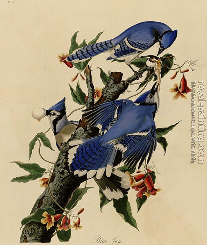 * Hand-painted John James Audubon Oil Painting Reproduction : Blue jay