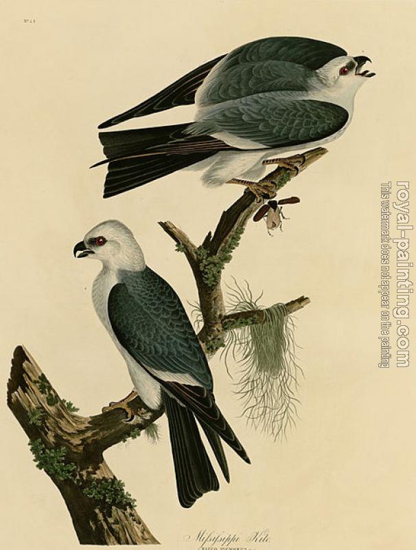 * Hand-painted John James Audubon Oil Painting Reproduction : Mississippi kite