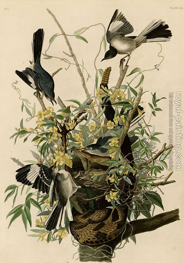 * Hand-painted John James Audubon Oil Painting Reproduction : Mocking bird