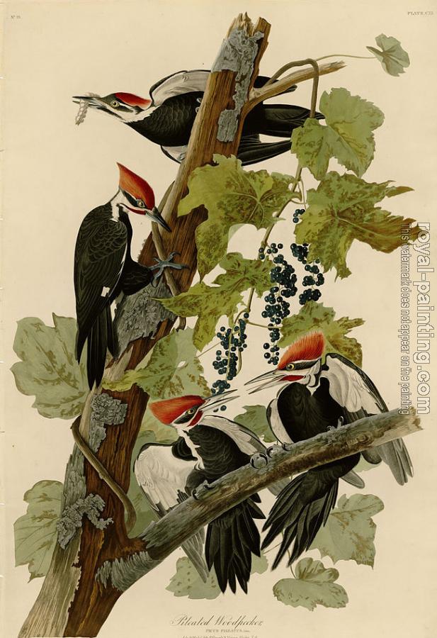 * Hand-painted John James Audubon Oil Painting Reproduction : Pileated woodpecker