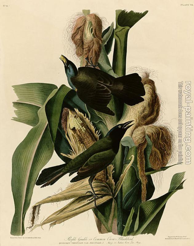 * Hand-painted John James Audubon Oil Painting Reproduction : Purple grakle or common crow blackbird, Plate 7