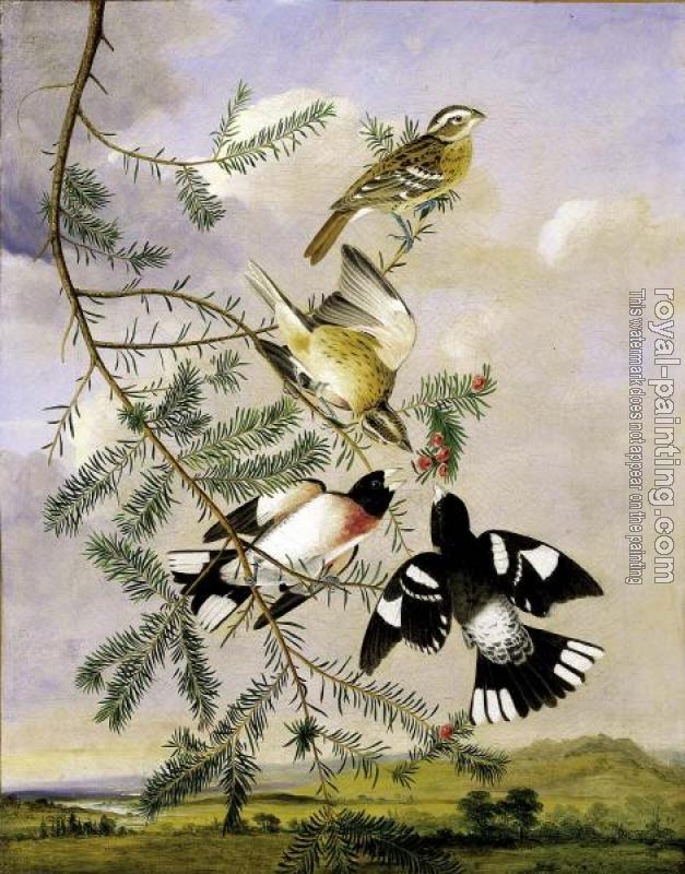 * Hand-painted John James Audubon Oil Painting Reproduction : Rose Breasted grosbeak