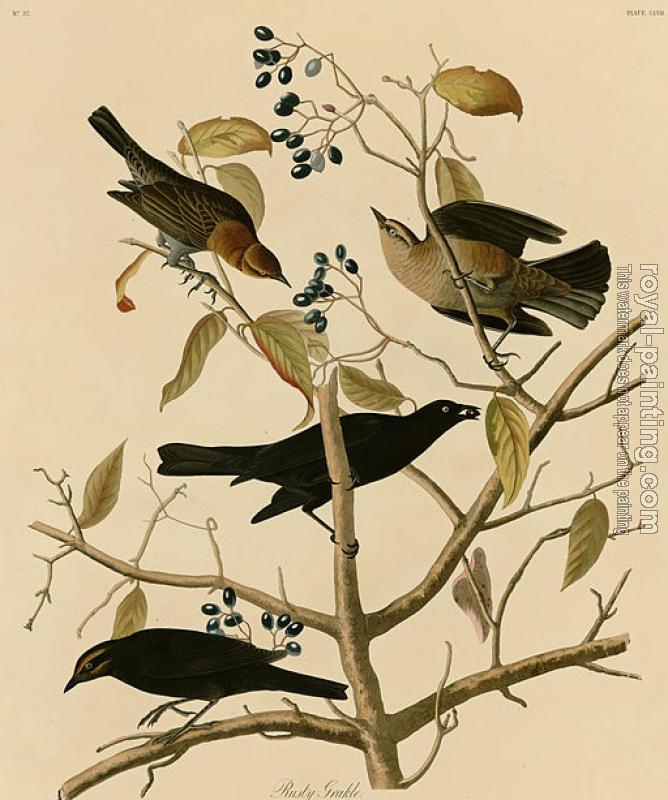 * Hand-painted John James Audubon Oil Painting Reproduction : Rusty grakle