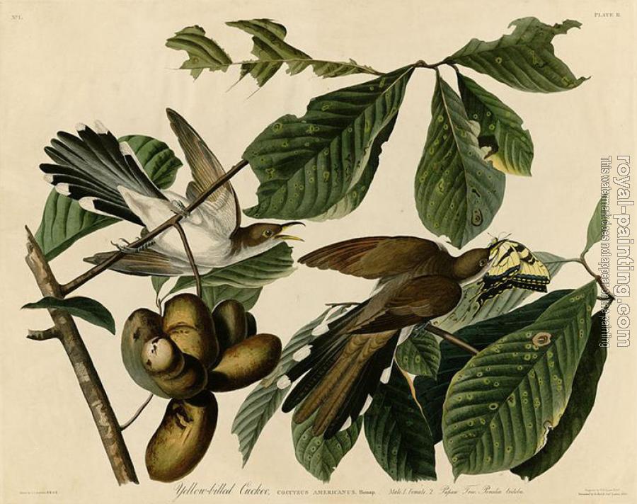 * Hand-painted John James Audubon Oil Painting Reproduction : Yellow billed cuckoo