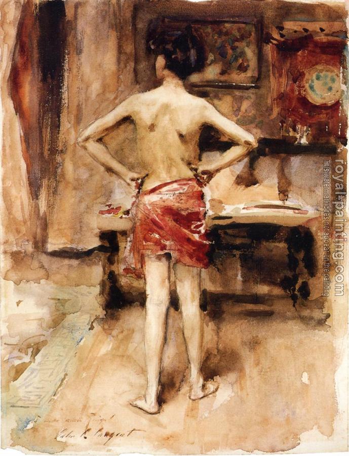 * Hand-painted John Singer Sargent Oil Painting Reproduction : Interior with Standing Figure