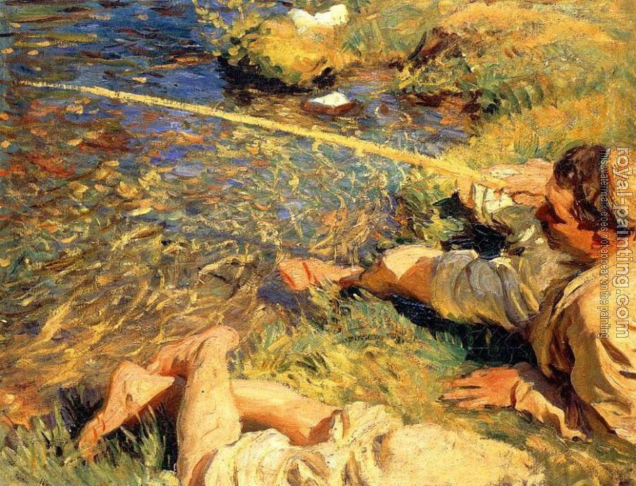 * Hand-painted John Singer Sargent Oil Painting Reproduction : Val d'Aosta, Man Fishing