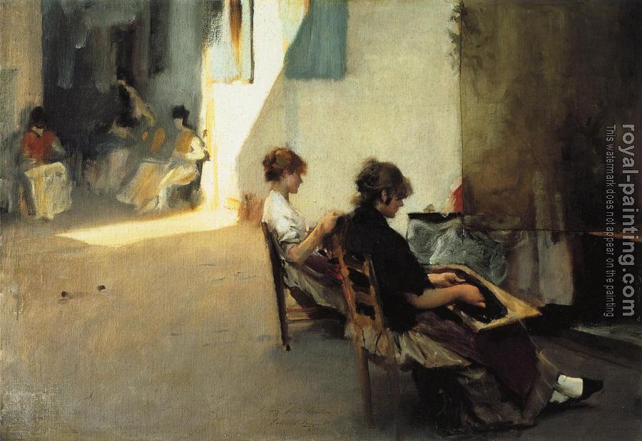 * Hand-painted John Singer Sargent Oil Painting Reproduction : Venetian Bead Stringers II