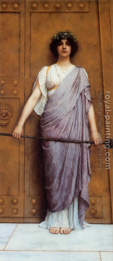 At the Gate of the Temple, The Priestess of Bacchus by John William Godward
