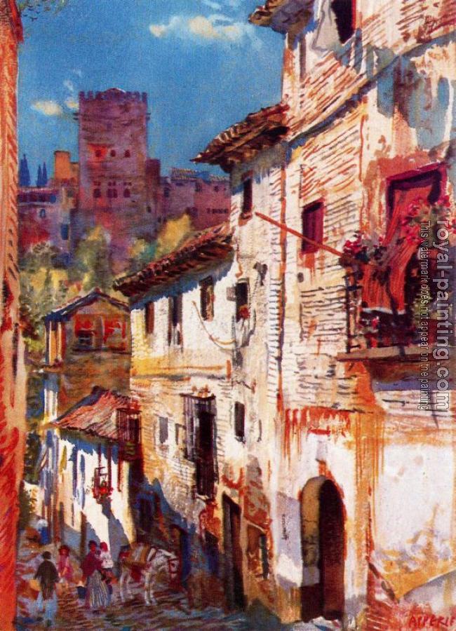 * Hand-painted Jorge Apperley Oil Painting Reproduction : umiel Street, Granada