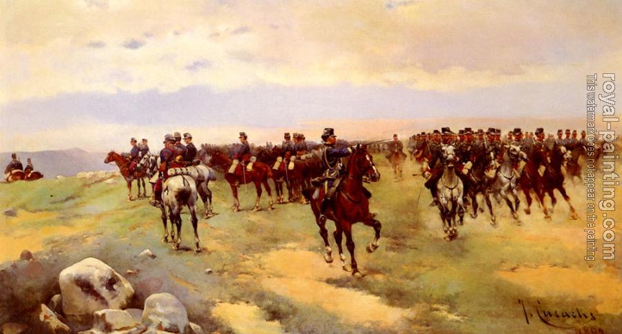 * Hand-painted Jose Cusachs Y Cusachs Oil Painting Reproduction : Soldier On Horseback