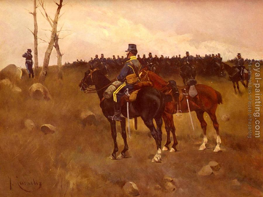 * Hand-painted Jose Cusachs Y Cusachs Oil Painting Reproduction : Soldiers On Horseback