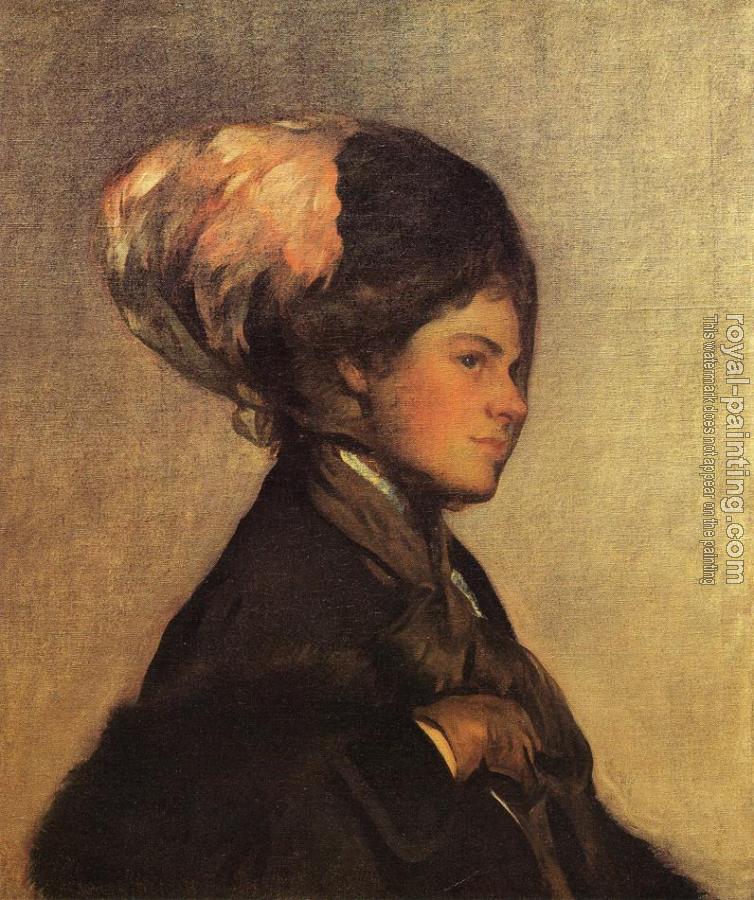 * Hand-painted Joseph R DeCamp Oil Painting Reproduction : The Pink Feather aka The Brown Veil