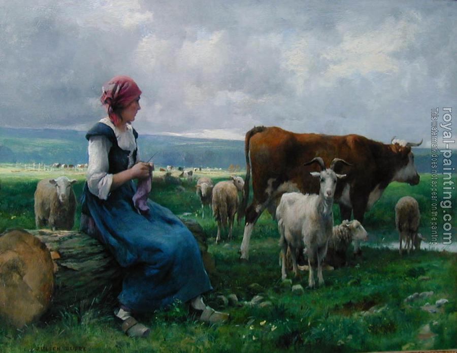 * Hand-painted Julien Dupre Oil Painting Reproduction : Dhepardes with goat sheep and cow
