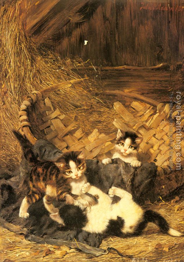 * Hand-painted Julius Adam Oil Painting Reproduction : Playful Kittens in a Basket