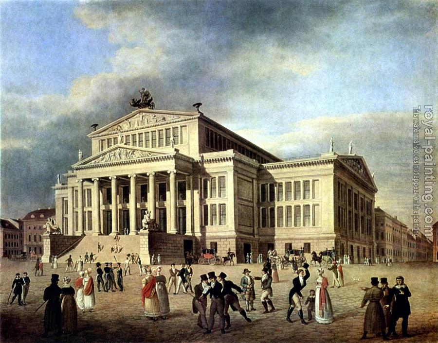 * Hand-painted Karl Friedrich Schinkel Oil Painting Reproduction : Farbige Darstellung des Schauspielhauses Berlin am Gendarmenmarkt