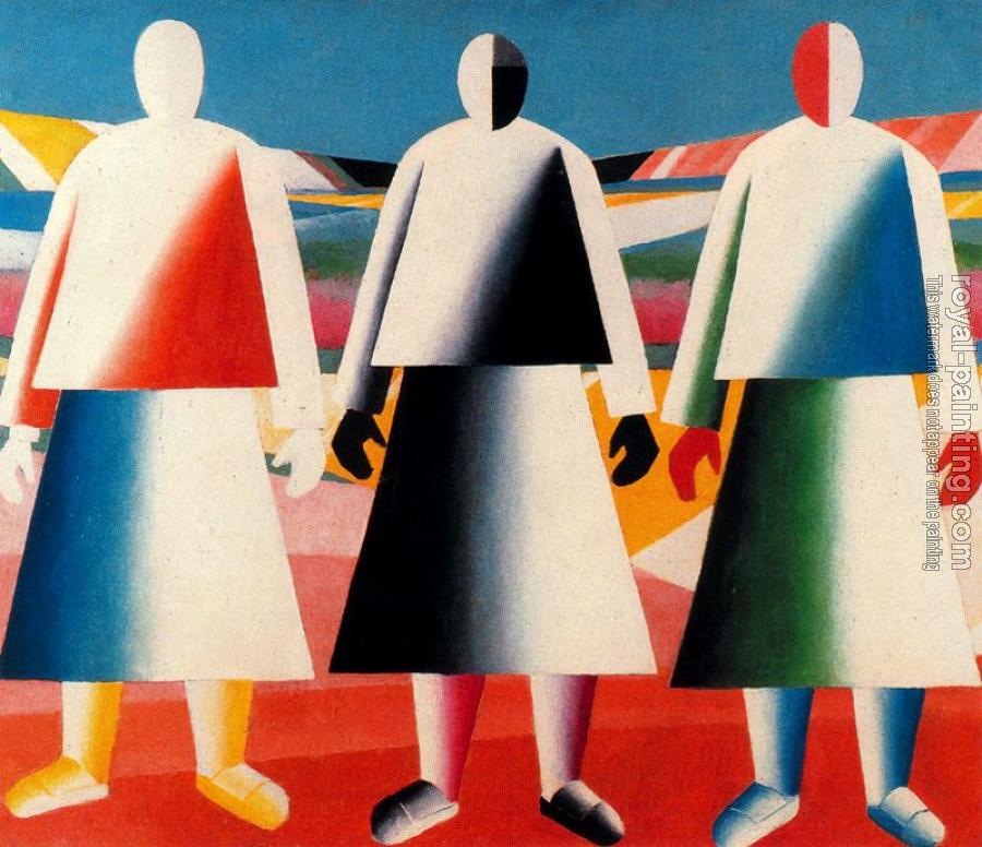 * Hand-painted Kazimir Malevich Oil Painting Reproduction : Girls in the Fields