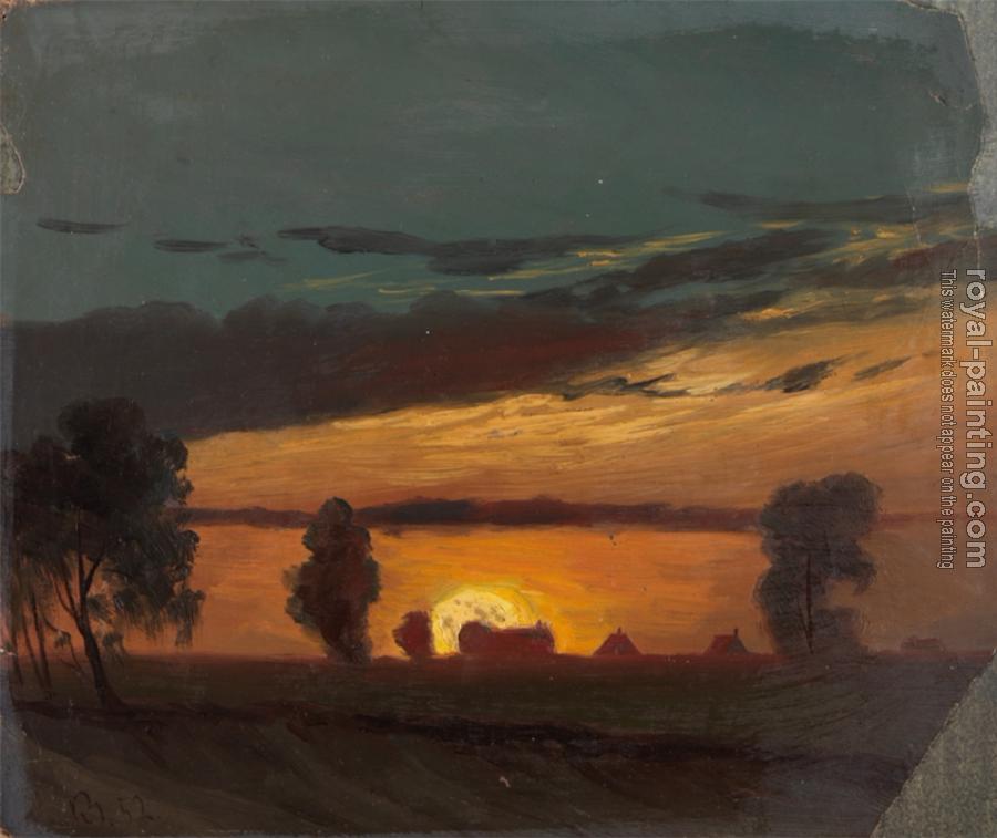 * Hand-painted Knud Baade Oil Painting Reproduction : Landskap i solnedgang