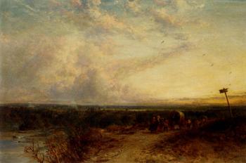 An Extensive River Landscape With A Drover In A Cart With His Cattle