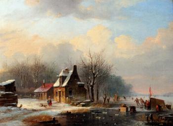 Skaters On A Frozen River Near A koek En Zopie
