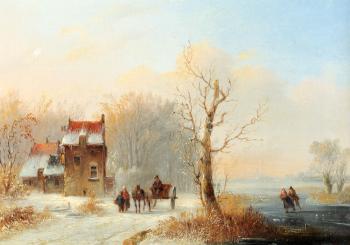 A Winter Landscape With Skaters On A Frozen Waterway And A Horse drawn Cart