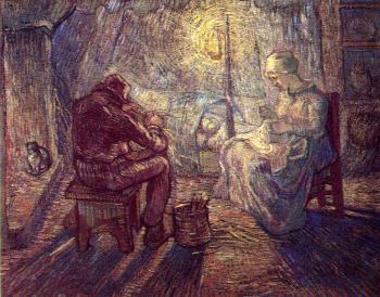 Two Peasant Women Digging in a Snow-Covered Field at Sunset