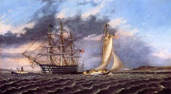 The American Clipper Architect off a Coast with Pilot Boat, a Regatta and other Shipping in the Distance