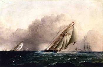 New York Yacht Club Schooner Dauntless Rounding Sandy Hook Lightship in the Hurricane Cup Race