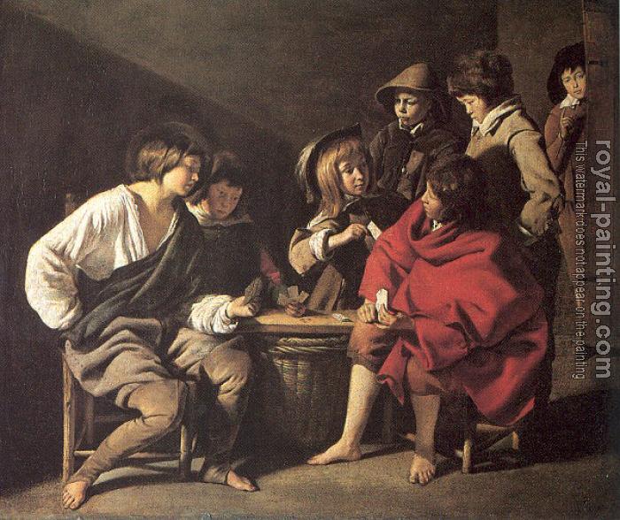 * Hand-painted Le Nain Brothers Oil Painting Reproduction : The Young Card Players