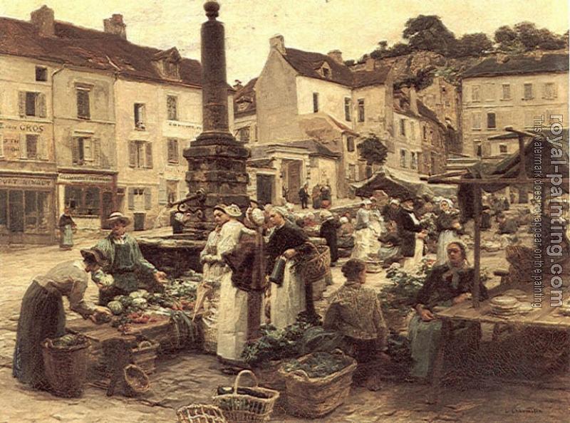 * Hand-painted Leon Augustin Lhermitte Oil Painting Reproduction : Chateau-Thierry Market