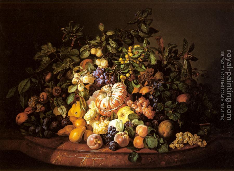 Leopold Zinnogger's oil painting. , 30829-Zinnogger, Leopold-A Still Life of Fruit on a Marble Ledge