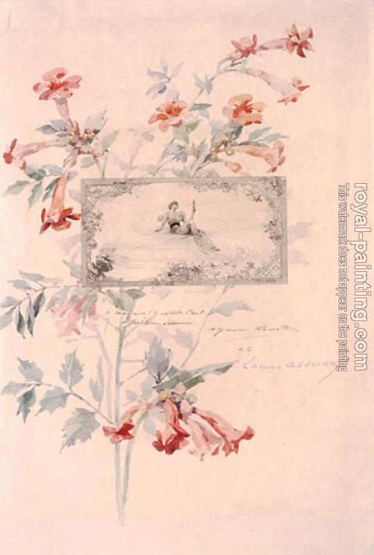* Hand-painted Louise Abbema Oil Painting Reproduction : Composition florale autour d'une gravure