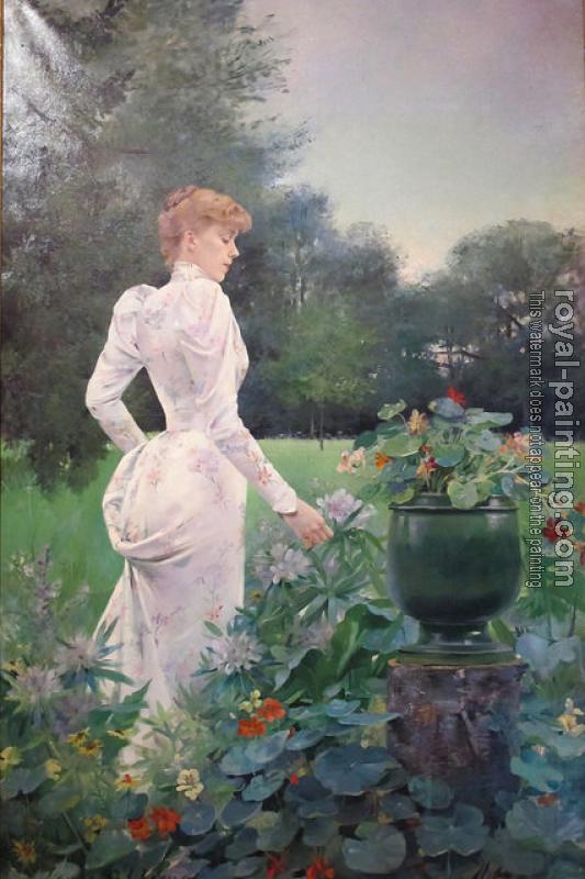 * Hand-painted Louise Abbema Oil Painting Reproduction : In the flowers