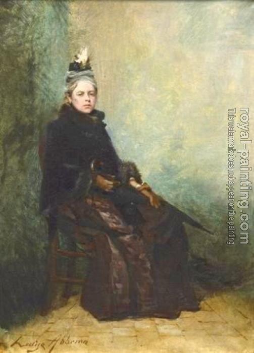 * Hand-painted Louise Abbema Oil Painting Reproduction : Portrait de femme en manteau avec un parapluie