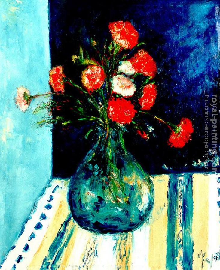 * Hand-painted Mari Fe Romero Campo Oil Painting Reproduction : Jarron Con Claveles