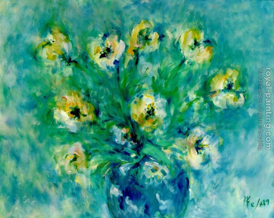 * Hand-painted Mari Fe Romero Campo Oil Painting Reproduction : Tulipanes En Azul