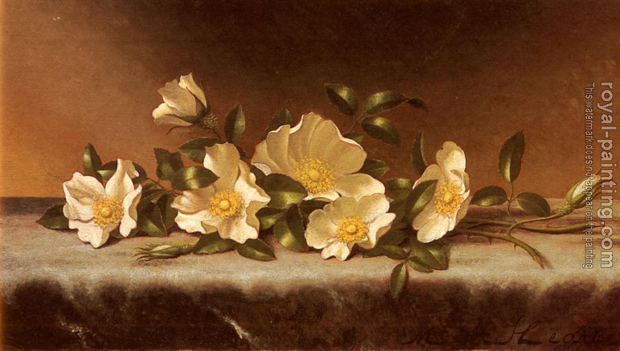 * Hand-painted Martin Johnson Heade Oil Painting Reproduction : Cherokee Roses On A Light Gray Cloth