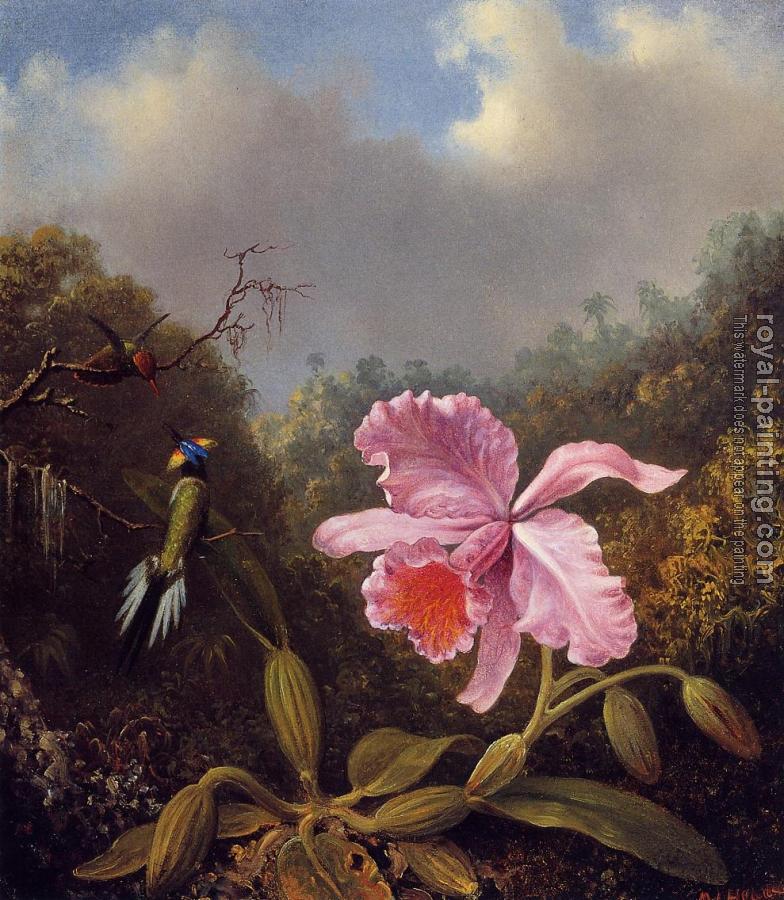 Fighting Hummingbirds with Pink Orchid by Martin Johnson Heade