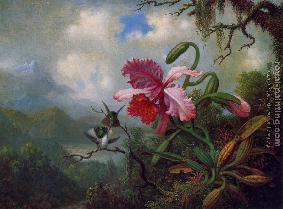 Orchid and Hummingbirds near a Mountain Lake by Martin Johnson Heade