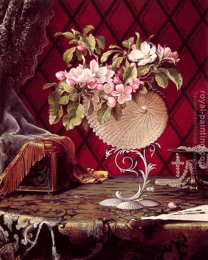 1870, Oil on canvas, 20 7/8 x 17 inches (53.3 x 43.2 cm), Private collection. Item ID 32456-Heade, Martin Johnson-Still_Life_with_Apple_Blossoms_in_a_Nautilus_Shell