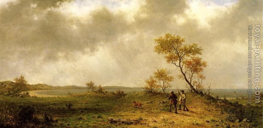 * Hand-painted Martin Johnson Heade Oil Painting Reproduction : Two Hunters in a Landscape