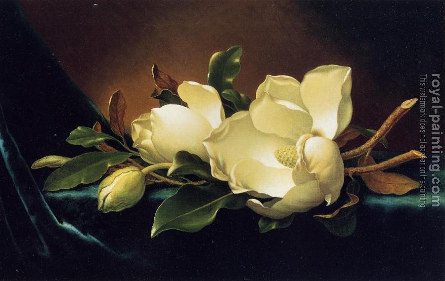 Two Magnolias and a Bud on Teal Velvet by Martin Johnson Heade