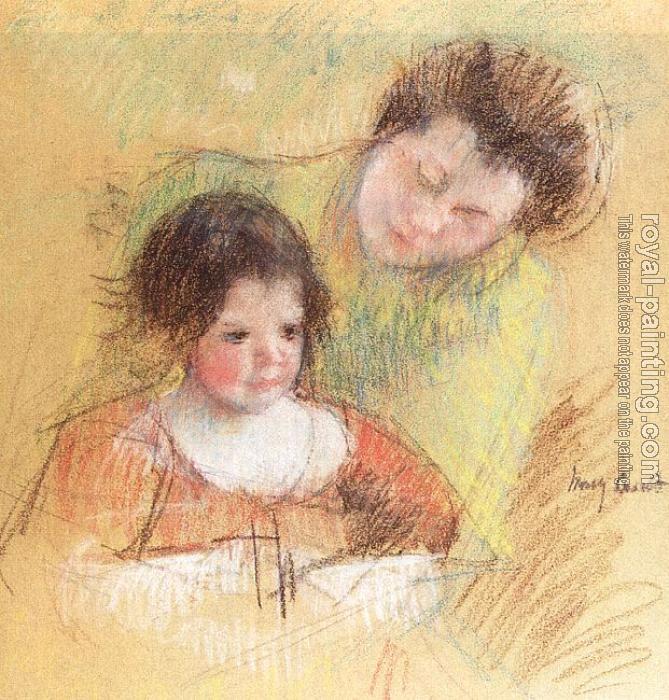 * Hand-painted Mary Cassatt Oil Painting Reproduction : Reine Leaning over Margot's Shoulder