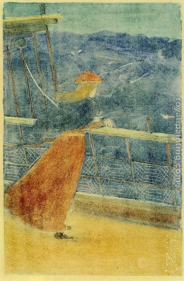 * Hand-painted Maurice Brazil Prendergast Oil Painting Reproduction : Woman on Ship Deck
