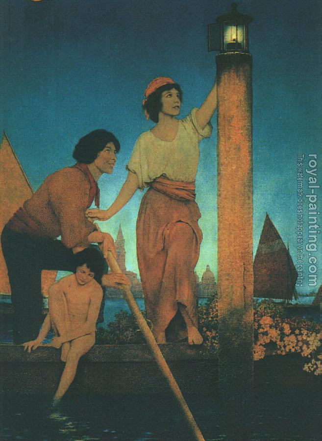 * Hand-painted Maxfield Parrish Oil Painting Reproduction : Venetian Lamplighter
